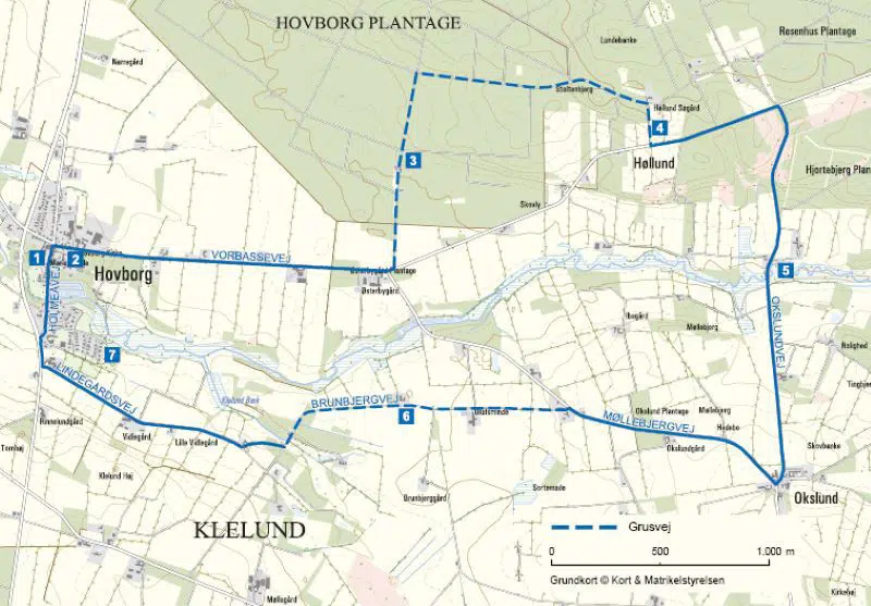 Tag med på en 15 kilometer lang tur fra Hovborg til Hovborg Plantage, Høllund Søgård og tilbage til Hovborg.