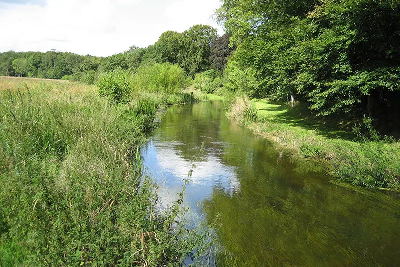 Holme Å slynger sig gennem et varieret landskab med skrænter, ferske enge, hedebakker og plantager. Åen udspringer i Gispelmose sydvest for Bække.