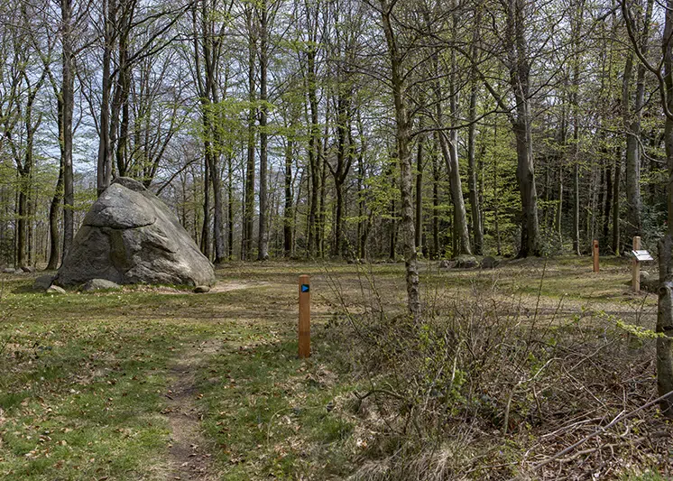 Tager man en lille afstikker på cirka en halv kilometer, kommer man til den omkring 50 hektar store Tirslund Plantage. Midt i plantagen står Tirslundstenen, der er en vandreblok af granit, som er ført hertil i forrige istid. Tirslundstenen er cirka 16 meter i omkreds og har en højde på godt 3,5 meter over jorden og er Danmarks næststørste granitbjerg.
