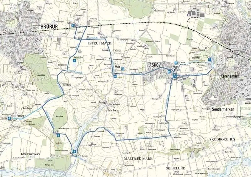 Tag ud på en 21 kilometer lang cykeltur, der går forbi Askov, Sønderskov og Ladelund.