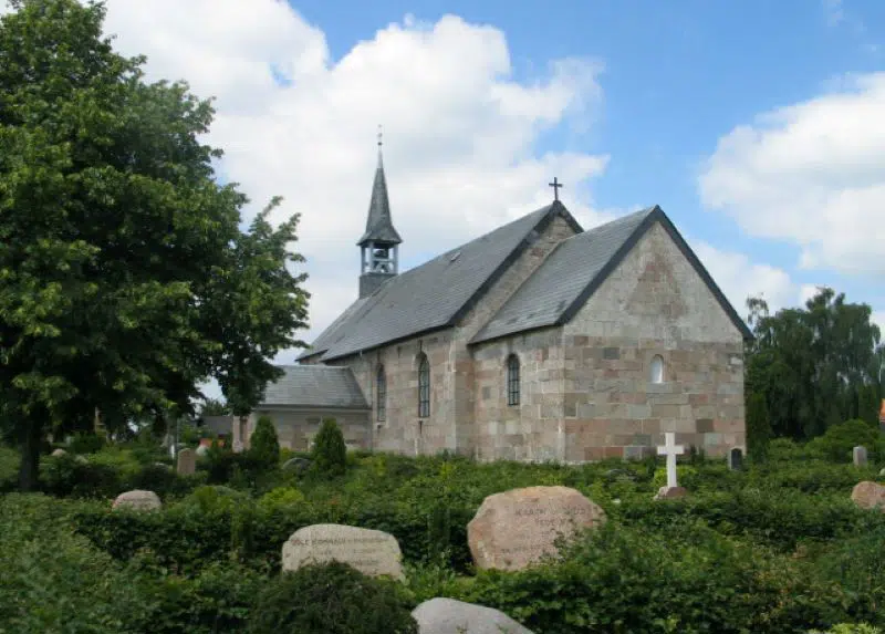 Opført i 1897-98 som erstatning for den middelalderlige kirke. Det gamle inventar blev overflyttet: Altertavlen er fra 1634, prædikestolen fra omtrent samme tid, kirkeklokkerne fra 1512, og døbefonten er romansk. I 1978 forsynede maleren Sven Havsteen-Mikkelsen den gamle altertavle og prædikestolen med nye malerier. Lige sydvest for kirken ligger en granitsten med en mandlig figur – givetvis Sct. Mikael, Dragedræberen. Den menes at have siddet i en dørkarm på den gamle kirke.