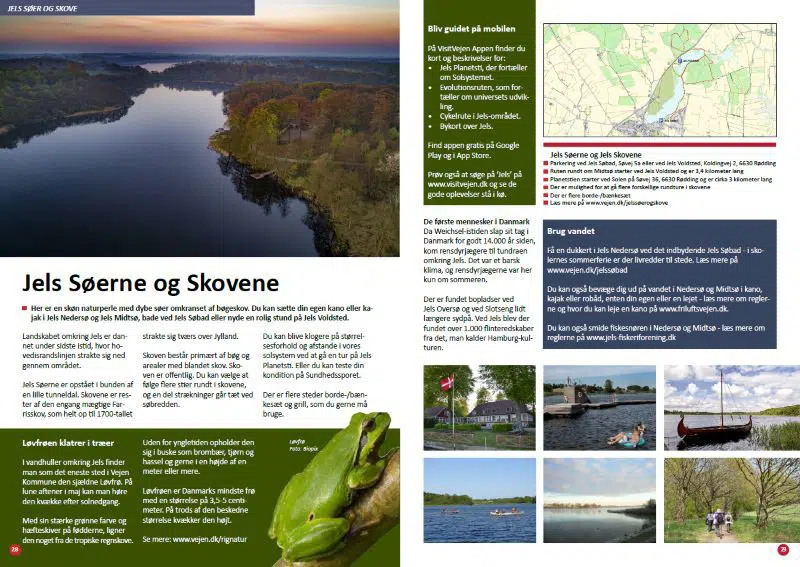 Her er en skøn naturperle med dybe søer omkranset af bøgeskov. Du kan sætte din egen kano eller kajak i Jels Nedersø og Jels Midtsø, bade ved Jels Søbad eller nyde en rolig stund på Jels Voldsted.