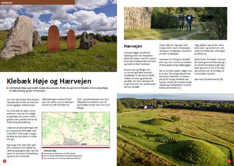 Ved Klebæk Høje, også kaldet Bække Monumentet, finder du spor fra tre tidsaldre i form af gravhøje, en skibssætning og spor af Hærvejen.